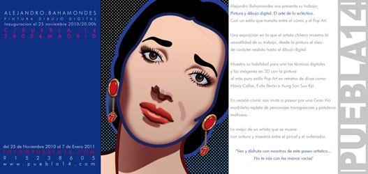 | La GALERIA PUEBLA14 nos presenta la obra "Pintura y dibujo digital. El arte de lo ecléctico" de Alejandro Bahamondes del 25 de noviembre al 7 de enero. |